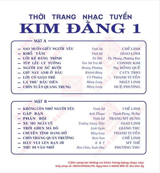 Tất cả các băng nhạc được thâu từ băng qua băng
