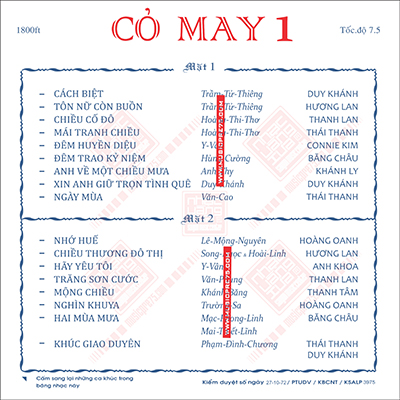 Tất cả các băng nhạc được thâu từ băng qua băng
