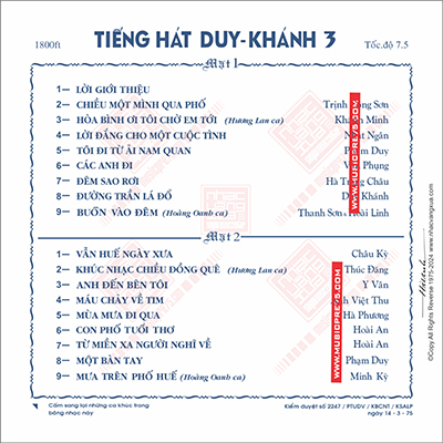 Tất cả các băng nhạc được thâu từ băng qua băng