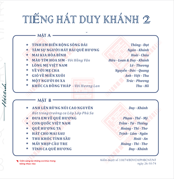 Tất cả các băng nhạc được thâu từ băng qua băng