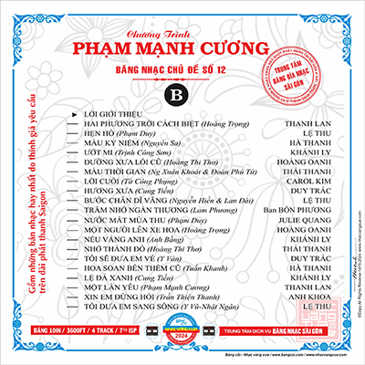 - Phát trên máy AKAI-400PRO – Thâu trên hệ thống máy Akai-650D