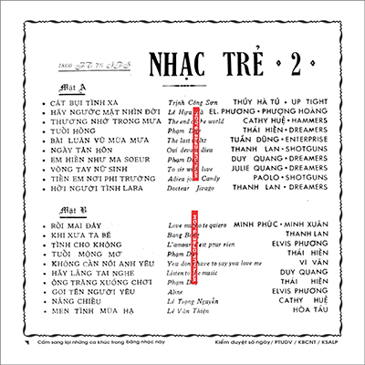 Tất cả các băng nhạc được thâu từ băng qua băng