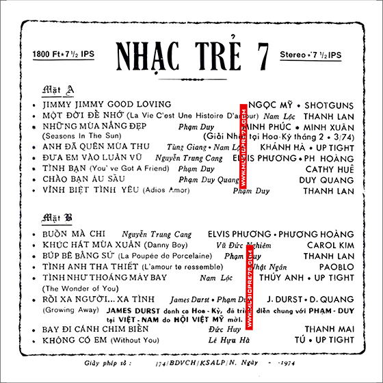 Tất cả các băng nhạc được thâu từ băng qua băng
