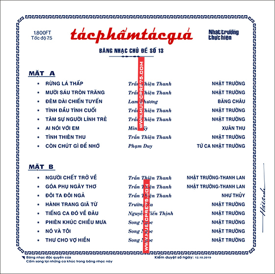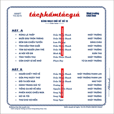 Tất cả các băng nhạc được thâu từ băng qua băng