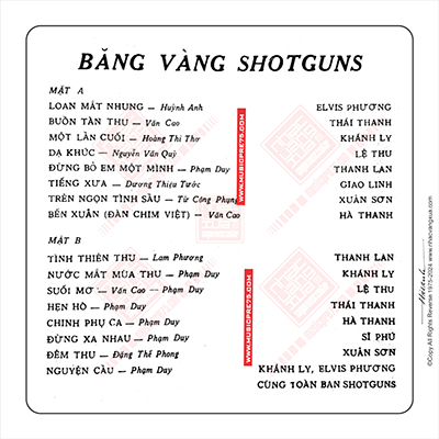 Băng nhạc Shotguns BĂNG VÀNG 1970