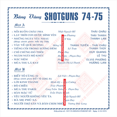 Băng nhạc Shotguns BĂNG VÀNG 74-75