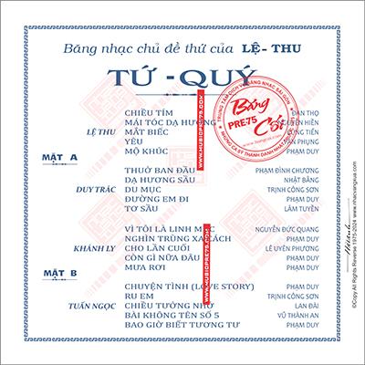 Băng nhạc Tứ Quý ( Do Lệ Thu thực hiện )